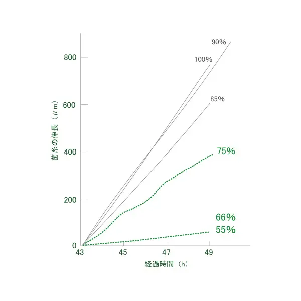 | カビの菌糸の湿度変化による伸長空気温度 25℃ 『空気調和衛生工学』Vol.69 No.7より |