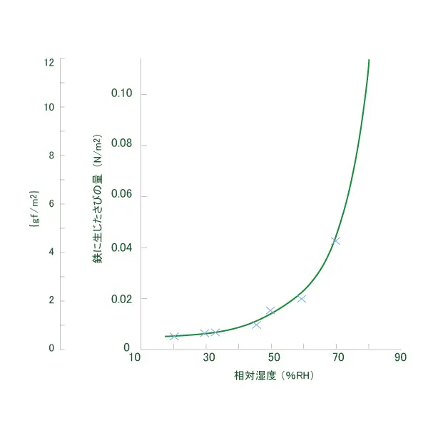 | 相対湿度と鉄さびの量 『空気調和衛生工学便覧 第12版』より |
